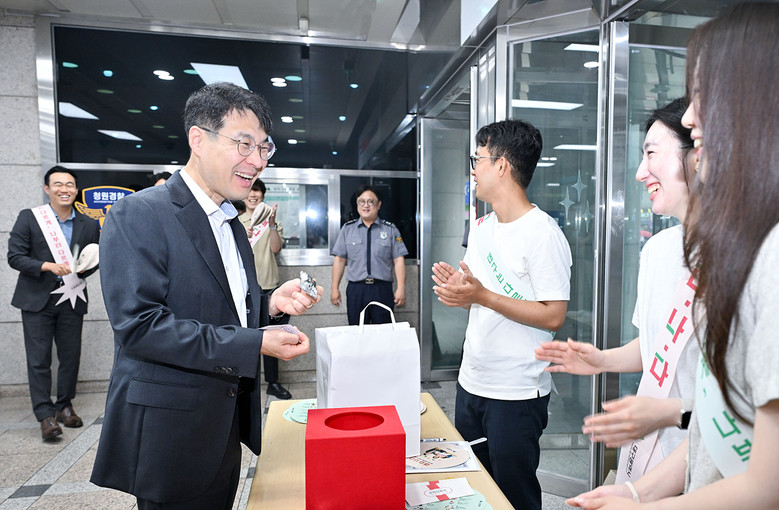 이번 캠페인은 동인청사에서는 공보관과 청년여성교육국장이, 산격청사에서는 환경수자원국장과 군부대이전정책과장이 참여한 가운데, 간부 공무원과 영솔루션 혁신모임 회원들이 함께하는 출근길 캠페인으로 진행됐다.
