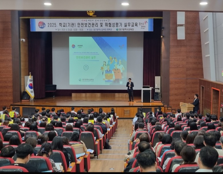 [대구 세계타임즈=한윤석 기자] 대구시교육청(교육감 강은희)은 5월 23일(금) 오후 1시 30분부터 행복관에서 학교장, 행정실장, 안전보건 업무담당자, 영양(교)사 등 학교(기관) 안전보건관계자 500여 명을 대상으로‘안전보건관리 및 위험성평가 실무 교육’을 실시했다.