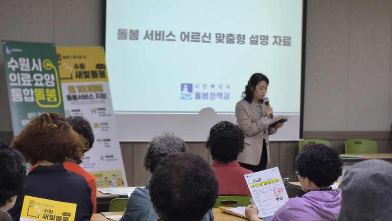 [수원시 세계타임즈=송민수 기자] 수원특례시(시장 이재준)는 4월 30일까지 경로당과 노인복지관 등 어르신 이용 시설을 중심으로 ‘의료·요양 통합 돌봄 서비스’와 ‘수원새빛돌봄(누구나)’을 집중적으로 홍보한다.
