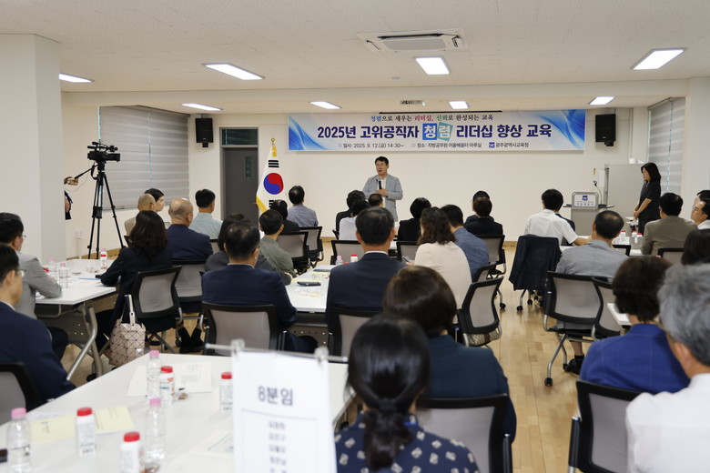 [광주 세계타임즈=손권일 기자] 광주시교육청(교육감 이정선)은 12일 시교육청 지방공무원어울배움터 마루실에서 본청 및 산하기관 4급(상당) 고위공직자 50여 명을 대상으로 ‘2025년 고위 공직자 청렴리더십 향상 교육’을 실시했다.