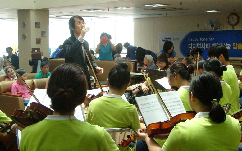 | ▲ 꿈쟁이오케스트라가 수원시립노인전문요양원에서 어르신들을 위한 나눔 공연을 하고 있다. |