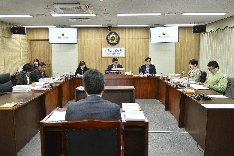 첫 번째 안건인 ‘긴급현안질문 협의의 건’은 상병헌 의원이 요구한 ‘민간위탁의 운영 및 관리 제도 개선’에 관하여 제94회 정례회 제5차 본회의에서 시장 등에게 일괄질문·일괄답변 방식으로 실시하도록 협의했다.