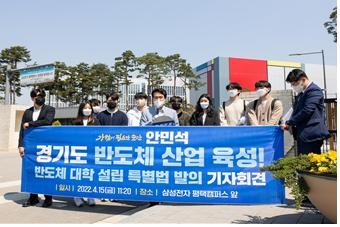 이어 기자회견을 통해 안민석 의원은 “반도체 산업은 국가 안보이자 경제 성장과 일자리 창출의 핵심 산업으로 세계 각국이 반도체 패권전쟁에 총력을 다 하고 있다”며 “문재인 정부와 이재명 전 경기도지사가 시작한 반도체 대표사업인 경기도 반도체 벨트를 완성하고, 반도체 인재 양성을 위한 경기도 반도체 대학 설립을 추진하겠다”고 밝혔다.
