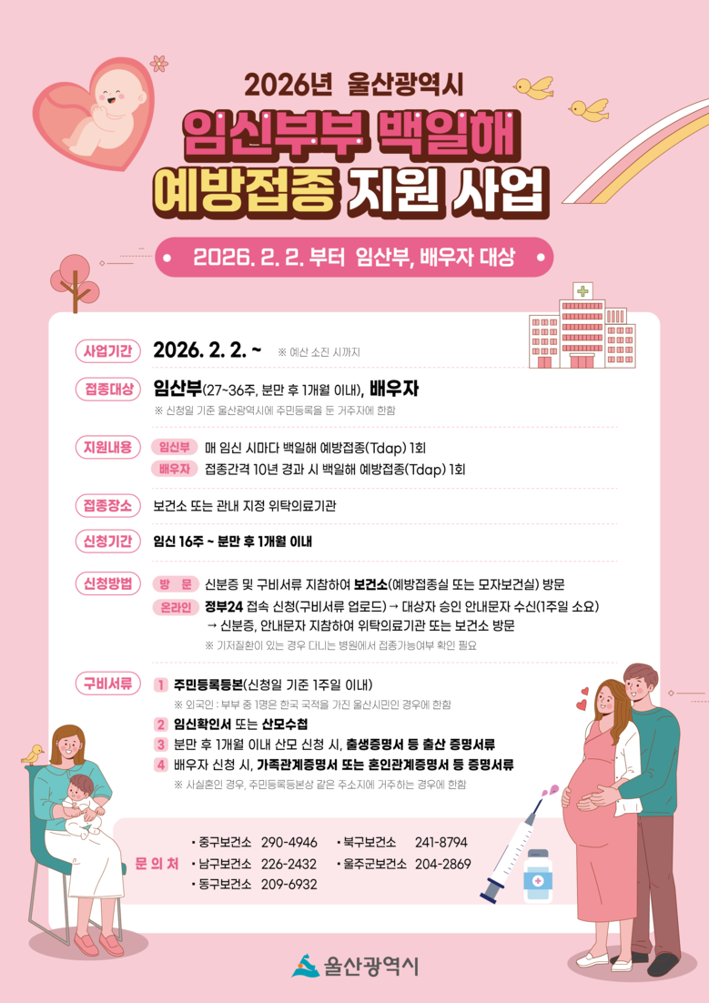울산시, 올해부터 임신부부 백일해 무료 예방접종 시행