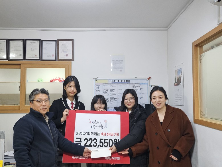 [대구 세계타임즈=한윤석 기자] 대구여자상업고등학교(교장 권순창)는 학생회가 ‘제44회 난강축제’에서 부스 운영으로 얻은 수익금 223,550원 전액을 장애인 직업 재활 시설인 더불어남구보호작업장에 기탁하며 나눔의 뜻을 전했다고 밝혔다.