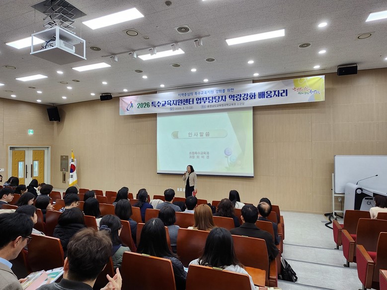 [충남 세계타임즈=이현진 기자] 충남교육청(교육감 김지철)은 13일(금) 충청남도교육청과학교육원(아산)에서 교육지원청 특수교육 담당 장학사와 특수교육지원센터 업무 담당자 140여 명을 대상으로 ‘2026 특수교육지원센터 업무 담당자 역량 강화 연수’를 개최했다.