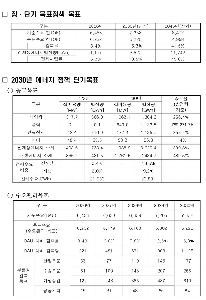 계획에는 데이터센터 구축, 신도시 및 신규 산업단지 조성 등 최근 급증하는 에너지 수요에 대응하기 위한 에너지 절감과 신재생에너지 보급 등에 관한 내용들이 포함됐다.