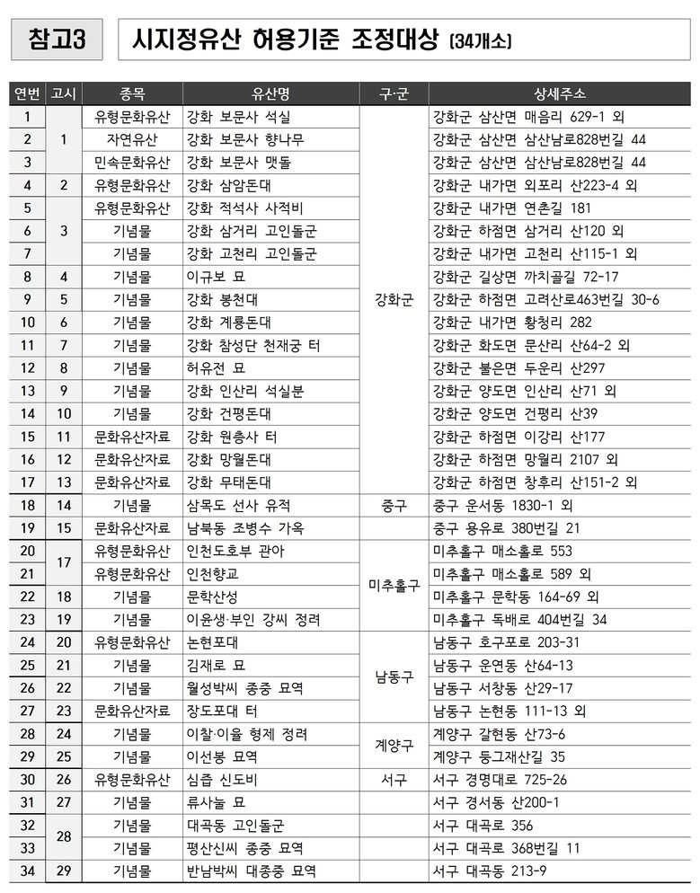 인천시는 이번 기준 조정을 통해 문화유산 보존체계의 실효성을 높이는 한편, 지역 주민의 불편을 해소하고 지역여건에 맞는 토지 활용을 지원하는 기반을 마련했다.
