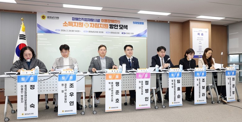 충남도의회는 지난 24일 충남도의회 회의실에서 ‘충청남도 장애인직업재활시설 이용장애인의 소득지원 및 자립지원 방안 모색을 위한 의정토론회’를 개최했다.