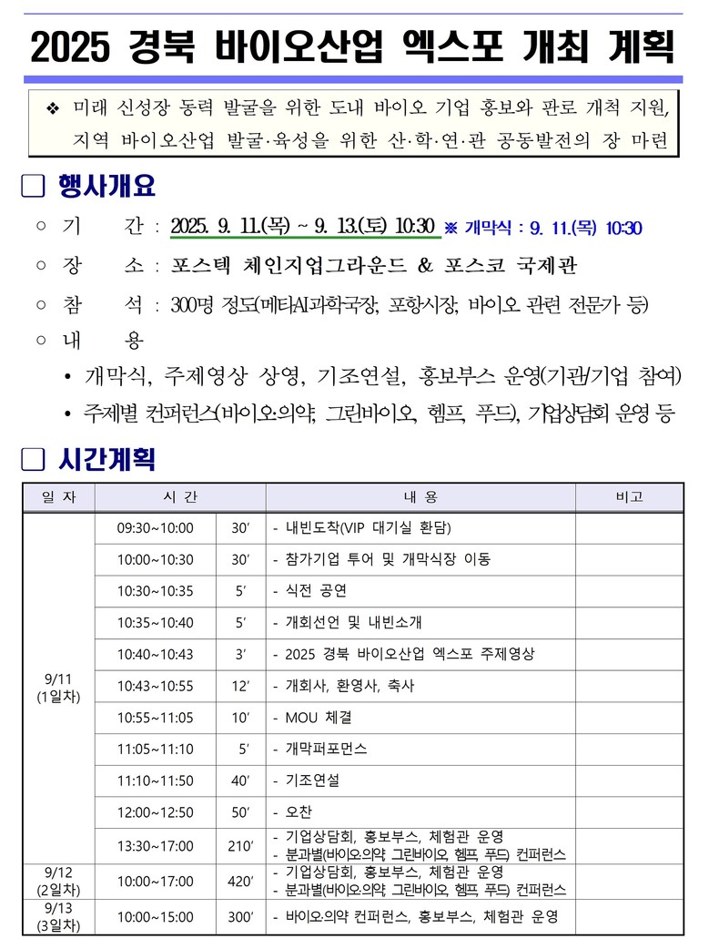 한편, 70여 개 바이오산업 기관과 기업이 참여한 전시 부스에서는 경상북도와 포항의 미래 바이오산업 정책을 소개하고, 국내 유수 바이오기업의 다양하고 새로운 첨단 바이오 제품과 기술을 소개한다.