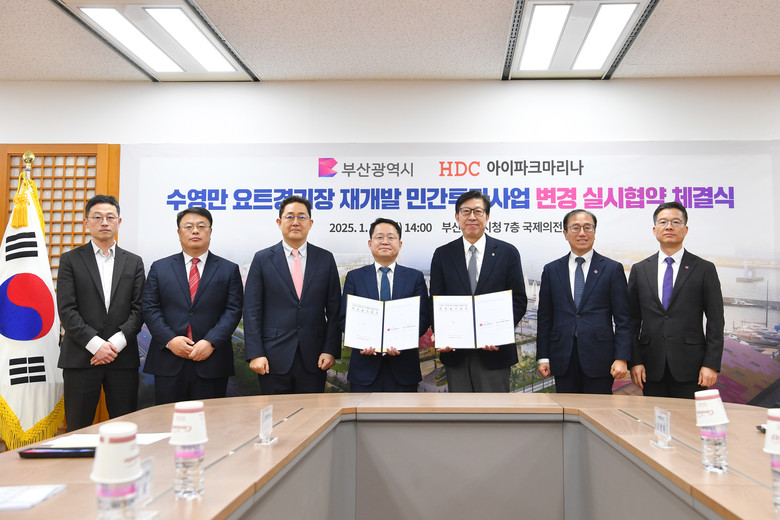 ◈ 박형준 시장, “이번 재개발 사업을 통해 시와 기업, 지역사회가 협력해 부산을 글로벌 복합 해양레저 거점으로 함께 성장시켜 나가겠다”라고 밝힐 예정 [부산 세계타임즈=이용우 기자] 부산시(시장 박형준)는 오늘(20일) 오후 2시 시청 국제의전실에서 아이파크마리나㈜와 「수영만 요트경기장 재개발 민간투자사업」에 대해 변경 실시협약을 체결하고, 본격적으로 사업을 추진한다고 밝혔다.