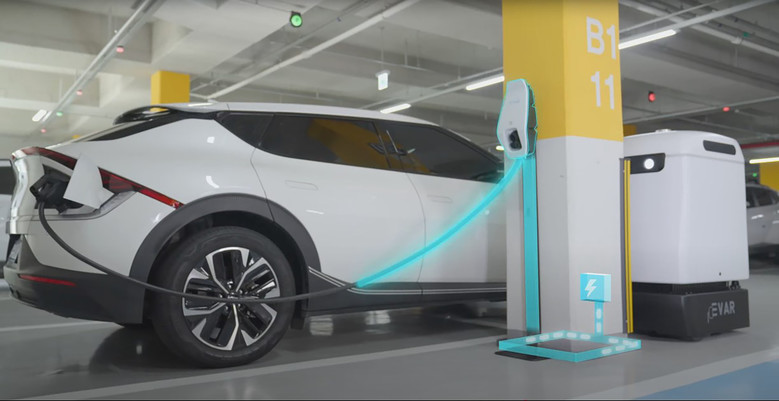 | ▲ -(주)에바의 자율주행 전기차 충전로봇 모습 |