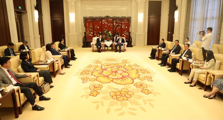 해외시장 개척 등을 위해 중국 출장 중인 김태흠 지사는 23일 저녁 양저우 영빈관에서 정하이타오 양저우시장을 만났다.