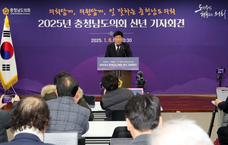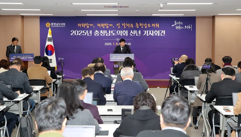 [충남 세계타임즈=이현진 기자] 충남도의회는 을사년 새해 민생 회복을 위한 의정활동을 펼쳐 도민으로부터 더욱 신뢰받는 충남도의회로 거듭날 것을 다짐했다. 충남도의회는 6일 의회 대회의실에서 신년 기자회견을 열어 지난해 의정활동 성과를 소개하고, 올해 의회 운영 방향 및 추진 과제를 설명했다. 홍성현 의장은 “충남도의회 의원들은 도민의 대표로서 품격과 실력을 갖추고, 도민의 삶의 질이 변화할 수 있도록 최선을 다하겠다”고 약속했다.