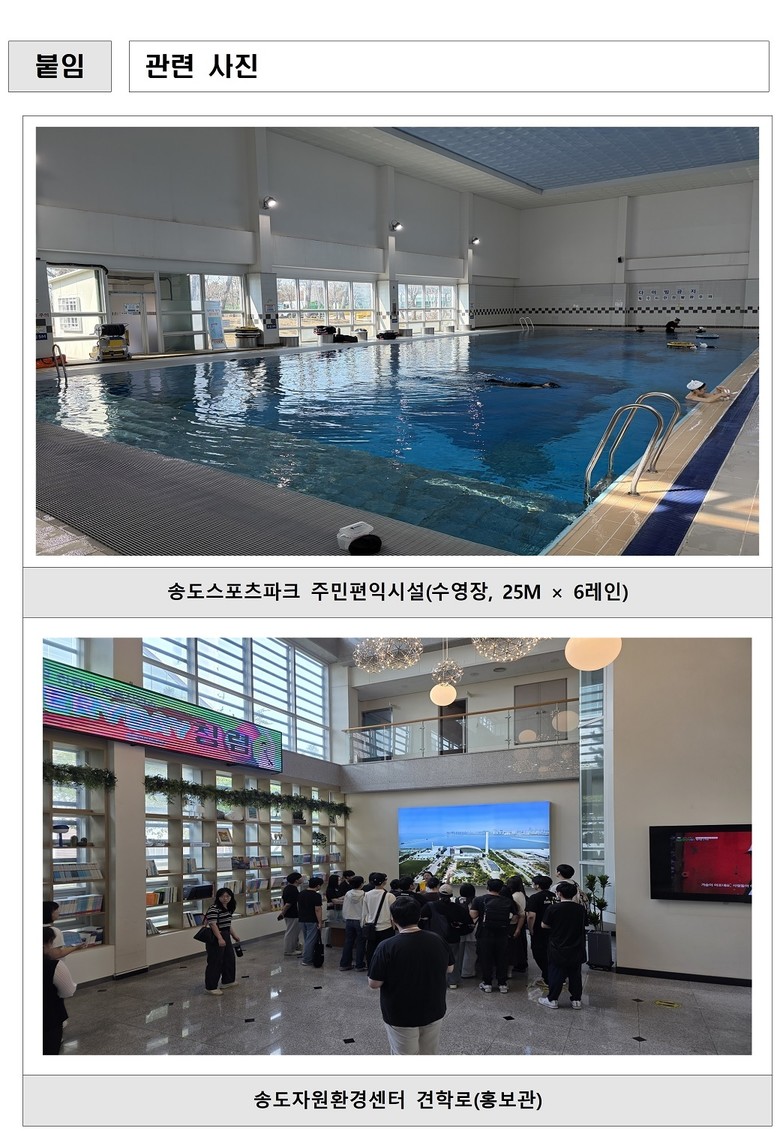 연간 38만 명 이상이 이용하는 송도스포츠파크는 수영장과 잠수풀 수질 개선을 비롯해 헬스장, 캠핑장 등 시설 보강이 이뤄진다. 시민 이용 편의성과 만족도를 높이기 위한 조치다.