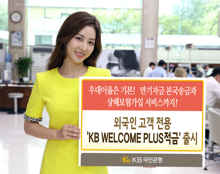 ‘안심’을 테마로 한 'KB WELCOME PLUS적금'은 국내 은행 최초로 외국인 고객이 안심하고 금융거래를 할 수 있도록 ‘만기안심 본국송금서비스’와 ‘상해안심 보험가입 서비스’를 제공한다.