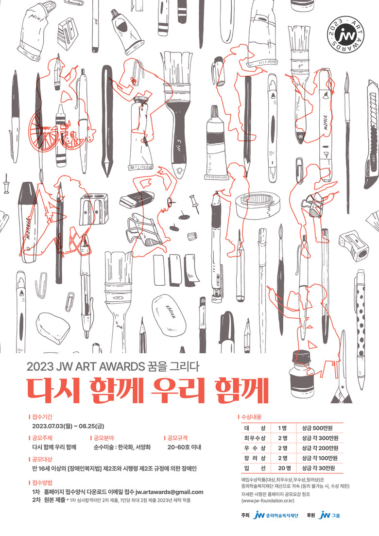 올해로 9회째를 맞는 ‘JW 아트 어워즈’는 장애 예술인에게 창작활동의 장을 제공하기 위해 마련된 행사로, 기업 공익복지재단이 주최하는 국내 최초의 미술 공모전이다. 총상금은 국내 장애인 미술전 중 최고 수준이다.