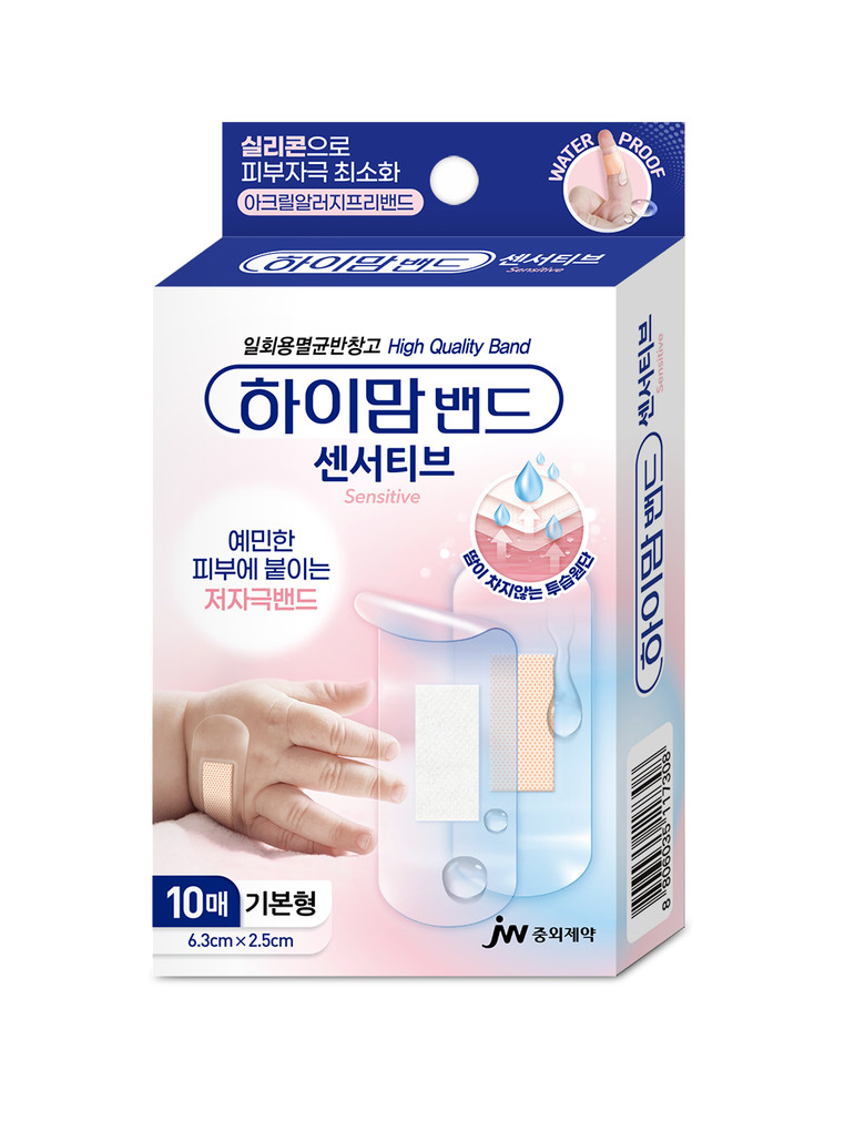 ‘하이맘밴드 센서티브’는 일회용 멸균 밴드로, 알러지 반응을 유발하는 아크릴 점착제 대신 실리콘을 적용해 피부 자극을 최소화했다.
