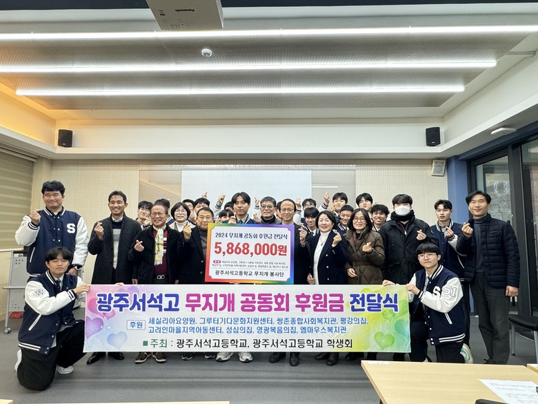 이번 후원금과 생필품은 광주서석고의 ‘나눔 전통’을 잇고 있는 ‘무지개공동회 봉사단’의 모금활동을 통해 마련됐다. 무지개공동회는 서석고 학생과 교사들이 참여하는 봉사단체로 후원금 모금, 캠페인, 복지시설 지원 활동 등 다양한 봉사활동을 전개하고 있다.