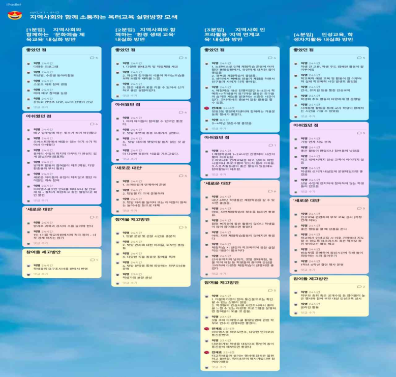 ◦ 시흥 옥터초(교장 이효순)는 2024년 학교교육과정 수립 및 학교교육 소통 강화를 위해 교육공동체가 함께하는 대토론회와 교육과정 워크숍을 약 2주간 운영