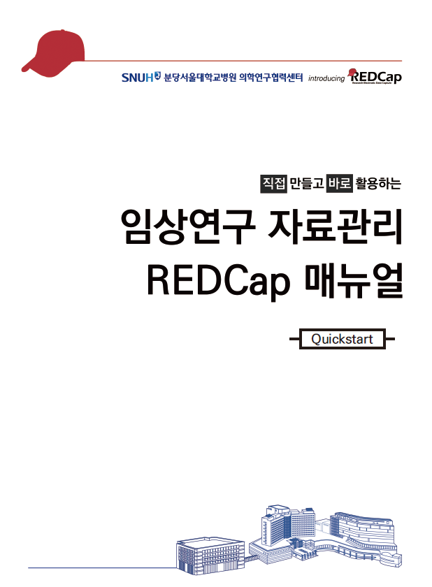 | ▲임상연구 자료관리 REDCap 매뉴얼 _Quickstart_ 표지 |