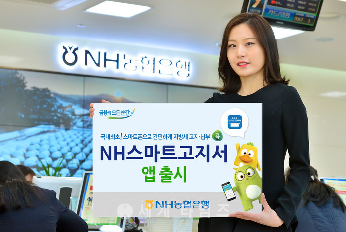 국내 최초로 출시된 「NH스마트고지서」는 자동차세, 재산세, 주민세 등 지방세를 스마트폰의 PUSH알림으로 고지하고 간편결제를 통해 실시간 납부하는 서비스다.