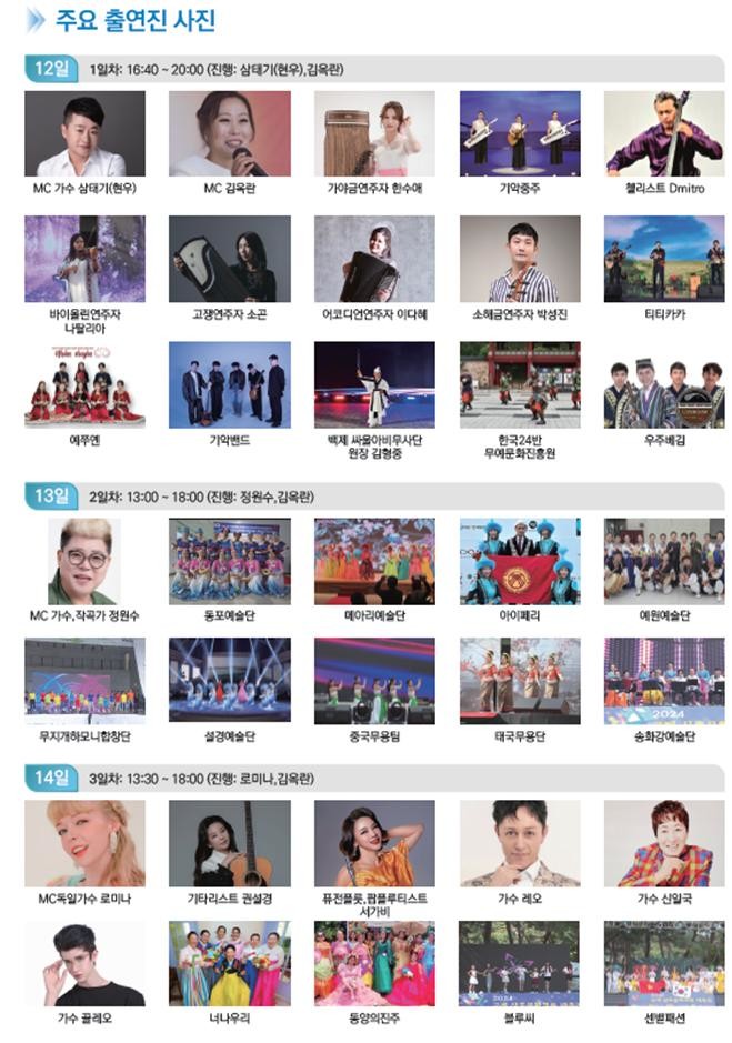 3일 간 진행한 이번 ‘2025 국제상호문화교류 대축전’은 12일(금)은 ▲세계악기 페스티벌(각국 전통악기 연주 및 노래), 13일(토)은 ▲국제상호문화교류 대축전(각 국가별 전통춤, 노래, 패션쇼 등), 그리고 마지막 날인 14일(일)은 ▲국제 전통문화체험(국가별 전통의상, 장신구, 악세서리, 전통놀이, 음식 체험)이 이어졌다.