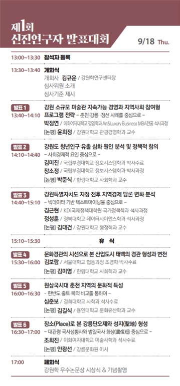 행사 당일에는 연구자들이 직접 연구 성과를 발표하며, 이 중 우수연구자 1인에게는 우수논문상과 함께 연구장려금 100만원이 수여될 예정이다. 발표된 논문들은 12월 강원학연구센터에서 발간하는 강원학 학술지에 투고 기회도 제공된다.