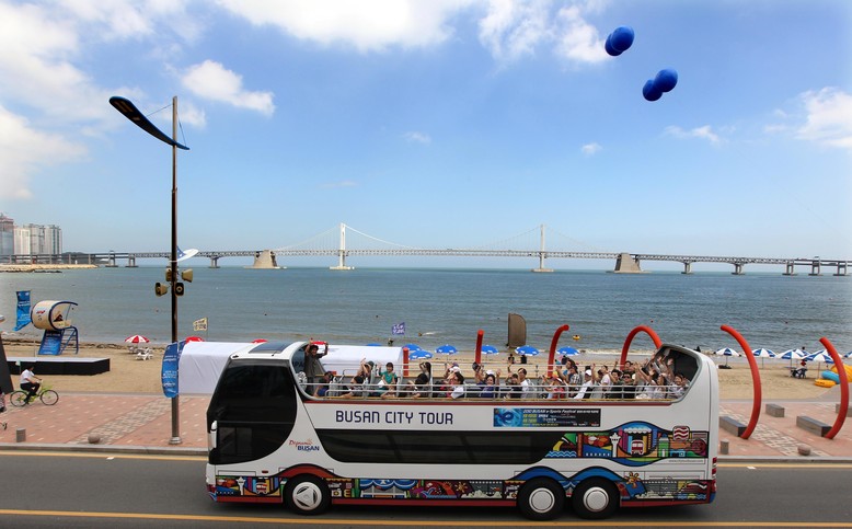 코스는 시티투어 2층 버스를 타고 광안리, 해운대, 송도, 자갈치 등 주요 관광명소를 2시간 내외로 둘러볼 수 있도록 구성된다.