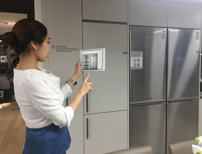 아파트를 구매하려는 소비자들이 가장 고민하는 부분인 세대 내 각종‘옵션’도 증강현실을 활용하여 선택할 수 있도록 했다. 기존 견본주택에는 간단한 이미지로만 옵션이 안내되어 설치 후 모습을 상상해보기 어려웠는데, ‘고덕 롯데캐슬 베네루체’ 견본주택에서는 해당 위치에서 바닥 마감재, 주방 가구, 주방 가전 등의 기본형과 옵션이 실제 적용된 모습을 바로 확인할 수 있다.