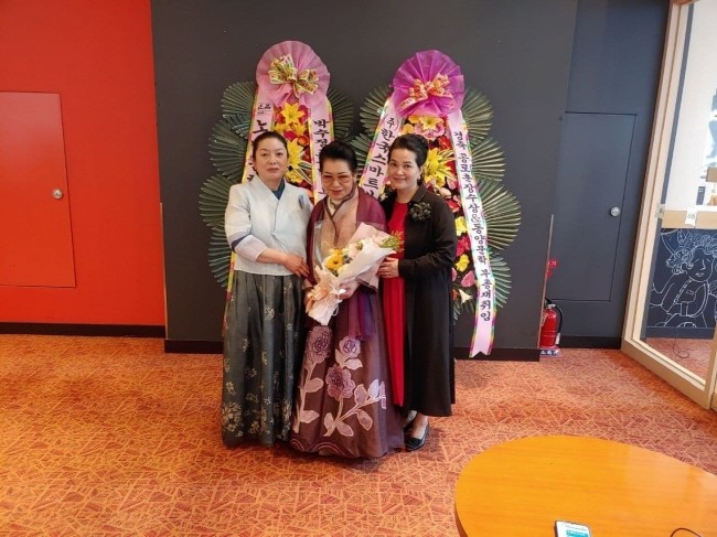 박수정 시인은 “플라워 아트 총체적인 세계를 넘어 시대 감각이 요청하는 토탈 아트 패션의 선두주자로 전세계의 그 아름다운 이상의 나래를 글로벌하게 활짝 펼쳐 나가시길 바라며 존경과 축하의 마음을 담아 꽃다발을 올려 드리도록 하겠습니다” 라고 영상 메세지를 띄운후 꽃다발 증정식을 퍼포먼스와 함께 해 깊은 감동을 전달했다.