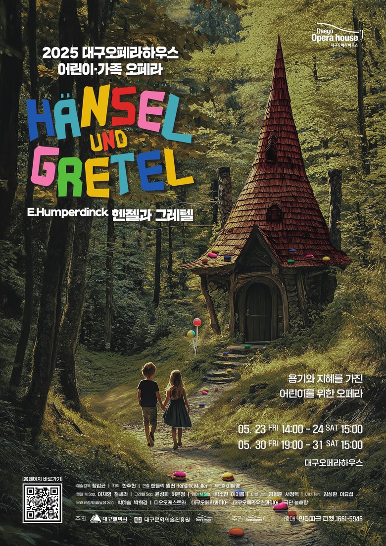 ‘헨젤과 그레텔’은 독일 민담을 19세기 초 그림형제(야콥과 빌헬름 그림)가 1812년에 출판한 어린이와 가정을 위한 이야기로 대구오페라하우스에서 무대연출, 오케스트레이션 등 오페라를 처음 접하는 유아들의 눈높이에 맞춰 새롭게 제작했다.