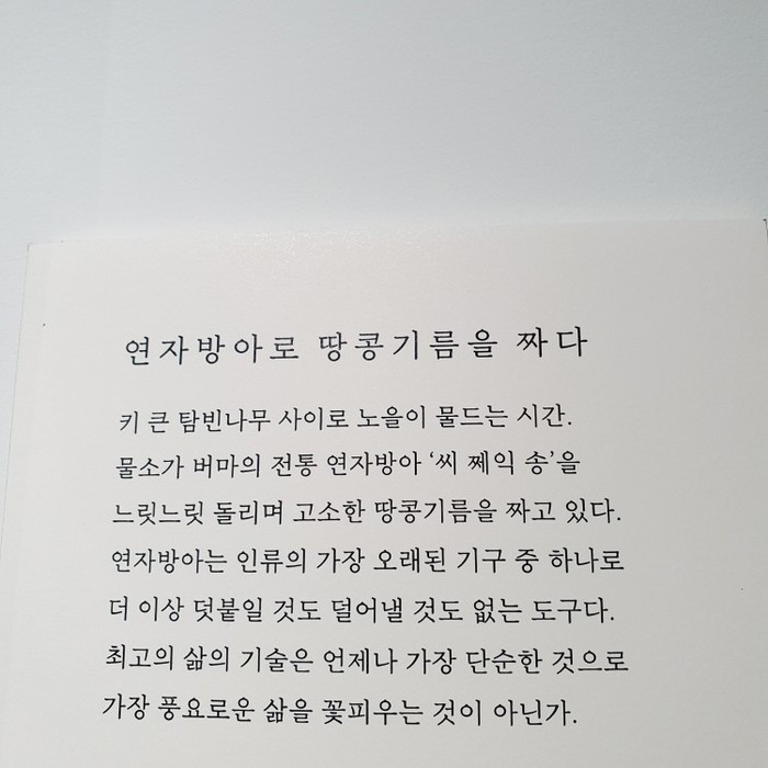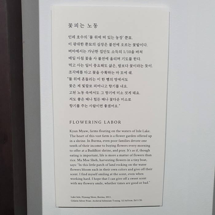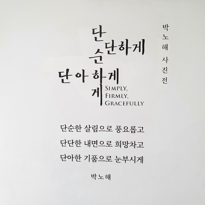이번 전시의 제목은 '단단하게 단순하게 단아하게'다. 사진 속에는 단단하고, 단순하고, 단아하게 자신들의 삶을 지켜나가는 이들의 모습이 담겨있다. 분쟁과 전쟁으로부터. '인간의 욕심'이 있는 한 이는 쉽게 멈추지 않을 것이다. 하지만 '사랑'이 있는 한 그를 막기 위한 투쟁 또한 쉽게 멈추지 않을 것이다.