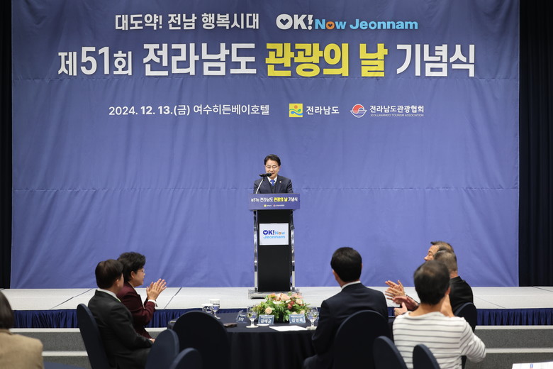 [전남 세계타임즈=우덕현 기자] 전남도의회 김태균 의장은 12월 13일 오전 11시 여수 히든베이호텔에서 개최된 ‘2024년 제51회 관광의 날 기념식’에 참석해 “전남의 맛과 멋을 널리 알려 관광산업 발전은 물론 전남발전을 이끌어 달라”고 당부했다.