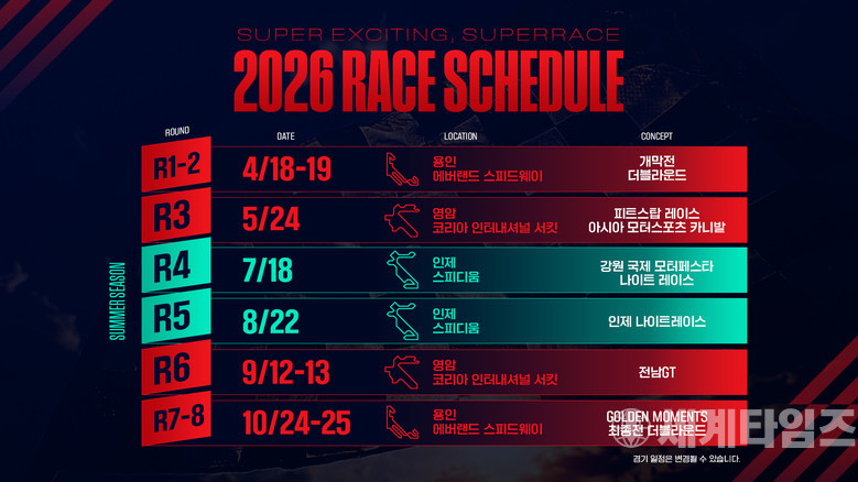 관람객 입장에서는 더욱 압축적이고 완성도 높은 경기 관람이 가능하며, 슈퍼레이스는 이를 통해 팬 접근성과 현장 만족도를 동시에 높이는 시즌을 만들어갈 계획이다.