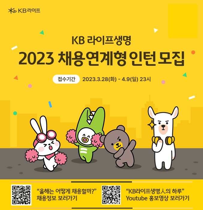 KB라이프생명 관계자는 "취업을 준비하고 있는 청년들에게 양질의 일자리를 제공하고자 채용연계형 인턴을 모집하게 됐다"며, “특히 2023년은 ‘KB라이프생명’으로 새롭게 출범한 만큼, 회사의 첫 신입사원으로 꿈을 함께할 유능한 인재들의 많은 관심과 지원 바란다”고 말했다.