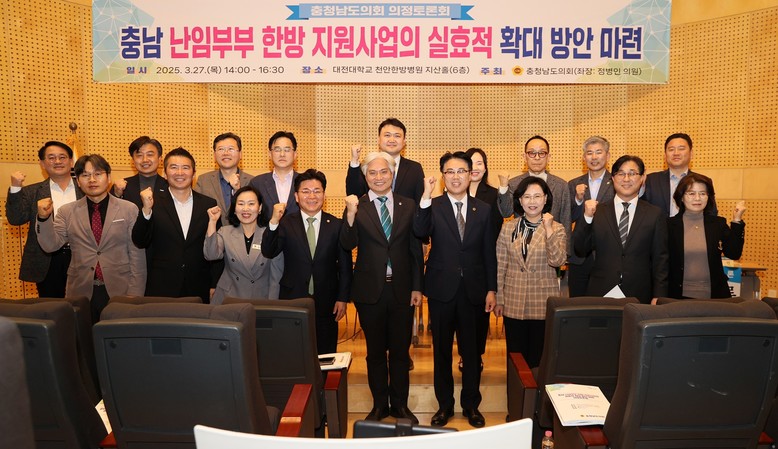 [충남 세계타임즈=이현진 기자] 충남도의회가 난임으로 어려움을 겪는 부부들의 임신 성공률을 높이고, 저출산 문제 해결을 위해 한방 지원사업 확대 방안을 논의하는 자리를 마련했다.