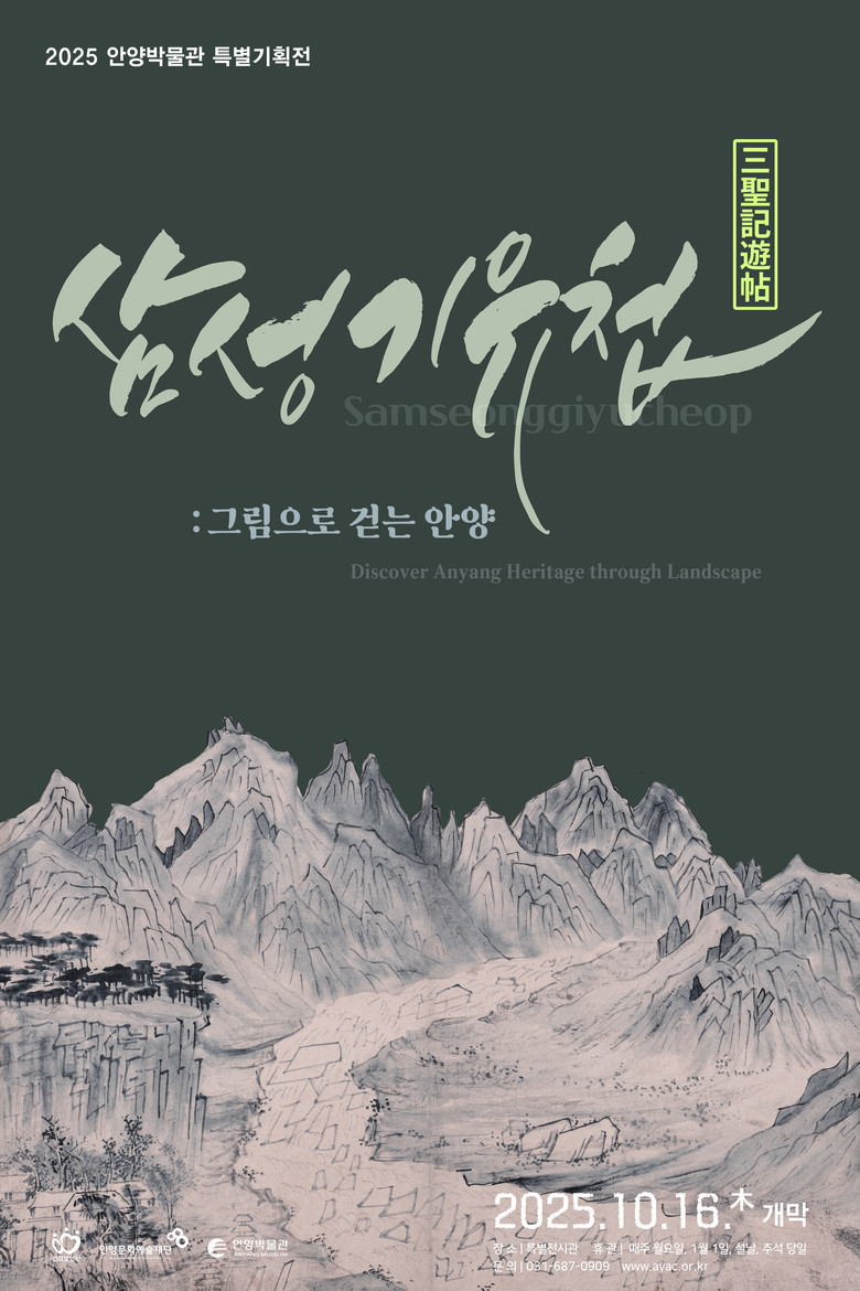이번 전시는 안양박물관이 2024년 새롭게 소장한 <삼성기유첩三聖記遊帖>을 기념하여 기획되었으며, 19세기 문인들의 시선 속에 비친 안양의 경관과 문화를 재조명한다. ‘삼성기유첩’은 관악산과 삼성산의 실경산수와 시문을 담은 귀중한 화첩으로, 실경산수화 11폭과 시문 42수 전편을 최초 공개한다. 화첩에 묘사된 남자하, 염불암, 삼막사 등 사찰과 누정의 모습은 현재에도 그 흔적을 확인할 수 있어, 안양의 과거와 현재를 이어주는 문화적 매개체로 주목된다.