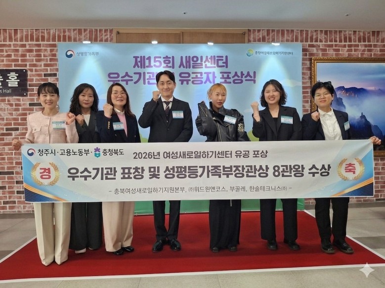 - 불황 뚫고 ‘구인처 발굴’ 사례 등 여성 일자리 성공 모델 발굴 - [충북 세계타임즈=이현진 기자] 충북도는 충북여성새로일하기지원본부(본부장 배혜영)가 3월 27일 성평등가족부가 주최한 '제15회 새일센터 우수기관 및 유공자 포상식'에서 총 8건의 장관상을 수상하여 전국 최고 성과를 거두었다고 밝혔다.