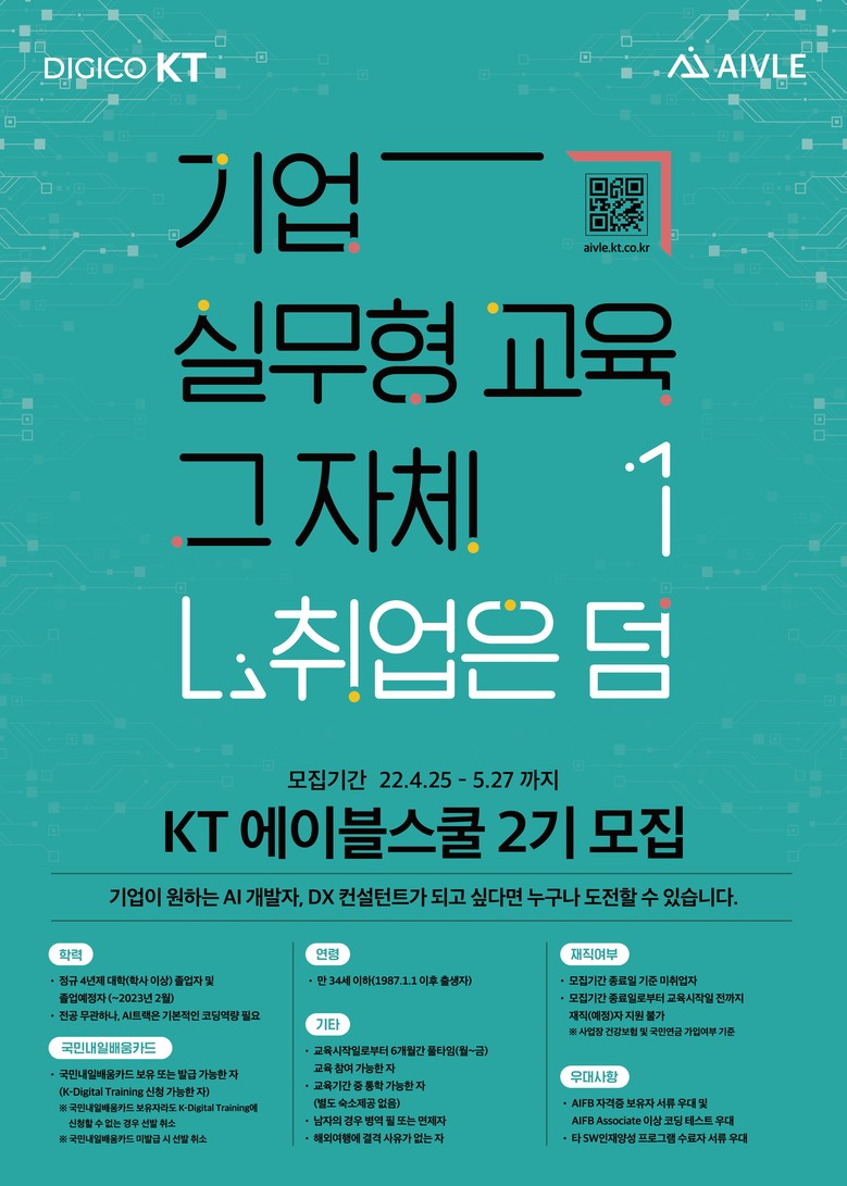 이후 대한민국 청년 인재 양성을 통한 국가 차원의 AI 경쟁력 강화를 위해 고용노동부와 협력해 KT 미래인재 양성 노하우를 바탕으로 한 에이블스쿨을 출범했다. 청년들의 본질적인 취업 경쟁력과 디지털 역량 강화와 함께 타 기업과도 협력해 교육생들의 채용 기회 확대에도 앞장서고 있다.