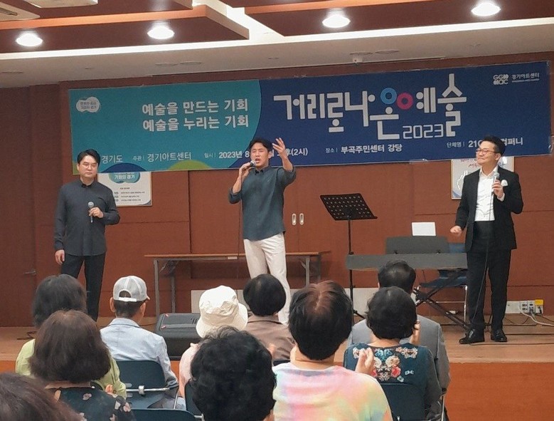 경기도가 주최하고 경기아트센터가 주관하는 거리로 나온 예술이 21세기아트컴퍼니와 함께하는 희망콘서트로 지난달 2회에 걸쳐 의왕시부곡주민센터와 청계사 다목적공원에서 성황리에 개최되었다.