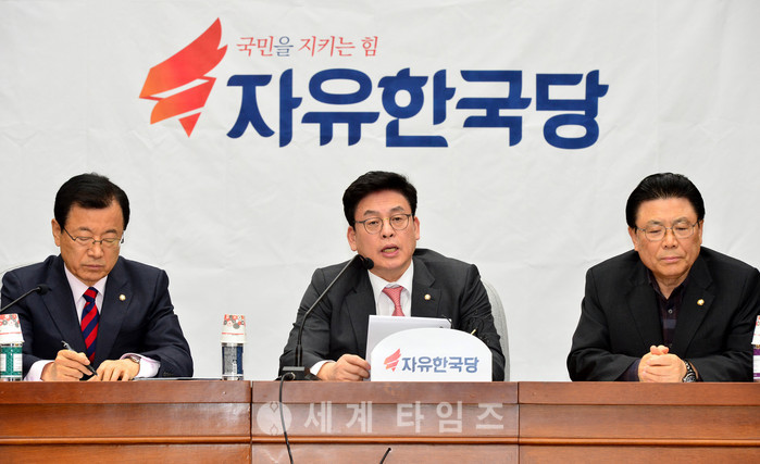 자유한국당 이현재 정책위의장, 정우택 원내대표, 박맹우 사무총장이 17일 오전 서울 여의도 국회에서 원내대책회의를 하고 있다. 2017.02.17.