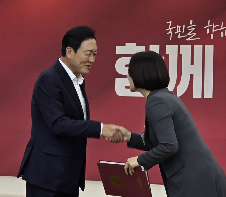 | ▲김선교 국힘 경기도당위원장,최서윤 광주시의원에 도당 대변인 임명장 전달.(사진=최서윤 의원) |