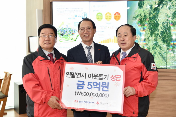 [나주=세계타임즈 양준호 기자]한국전력(사장직무대행 김시호)이 21일 나주 본사에서 지역 내 어려운 이웃을 위해 사회복지공동모금회(회장 허동수)에 5억원을 전달했다고 밝혔다.