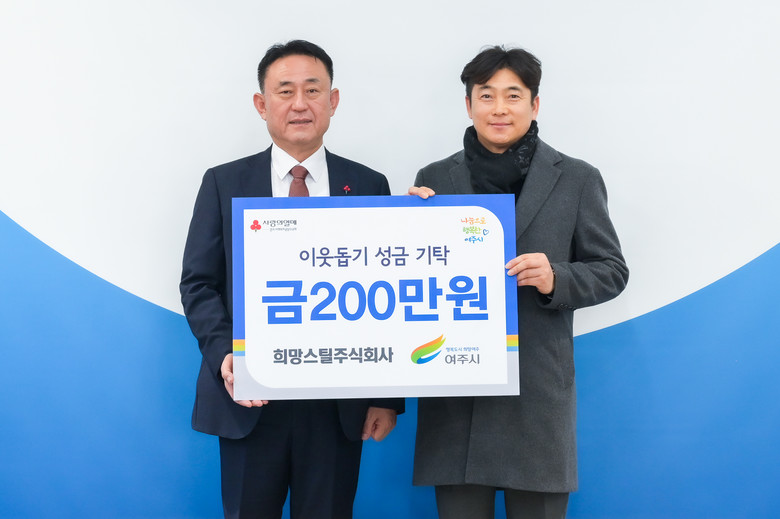 [여주시 세계타임즈=송민수 기자] 지난 19일 여주시 삼교동 소재 희망스틸주식회사 김영기 대표는 여주시(시장 이충우)를 방문하여 이웃돕기 성금 200만원을 기탁하였다.