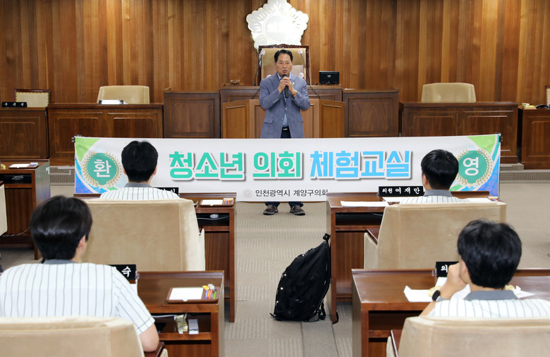 [계양구 세계타임즈=심하린 기자] 인천 계양구의회(조양희 의장)는 지난 14일 인천계양고등학교 학생 15명이 의회 본회의장을 방문해‘청소년의회 체험 프로그램’에 참가했다고 밝혔다.