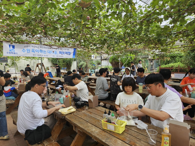 수원시 관계자는 “일인다역을 수행하고 있는 아빠들도 쉼이 필요하다”며 “아이들은 허브비누 만들기를 하며 오감놀이를 즐기고 아빠들은 싱그러운 허브 향기 속에서 힐링하는 시간을 보냈다”고 말했다.