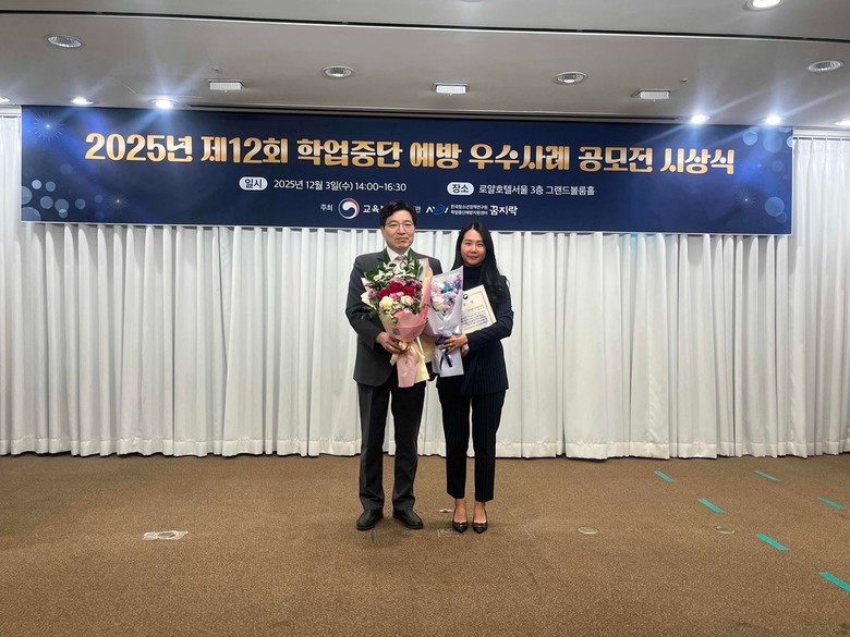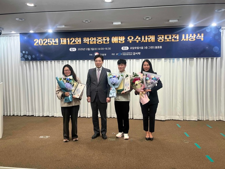 [광주시 세계타임즈=송민수 기자] 광주시 청소년상담복지센터는 지난 3일 열린 ‘2025년 제12회 학업 중단 예방 우수사례 공모전 시상식’에서 미디어 콘텐츠 부문 교육부 장관 표창과 교육 프로그램 부문 한국청소년정책연구원장상을 동시에 수상하는 영예를 안았다.