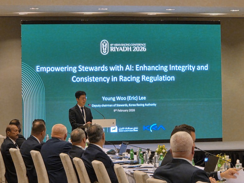한국마사회는 지난 9일 사우디아라비아 리야드에서 열린 제14회 국제경마심판회의(International Stewards’ Conference)에서 ‘한국 경마 심판분야 AI 적용 사례’를 발표했다고 밝혔다. 이번 회의는 제41회 ARC(Asian Racing Conference)와 연계해 열렸으며, 세계 각국 경마 시행체 심판위원과 공정성 전문가들이 참석했다.