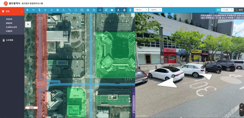 ‘도로점용 관리기능’은 항공사진과 로드뷰 등 최신 공간정보 기술을 활용, 광주 전역의 도로점용 현황을 시각화했다. 이를 통해 담당 공무원이 현장에 직접 나가지 않고도 실시간으로 도로점용 현황을 확인할 수 있게 됐다.